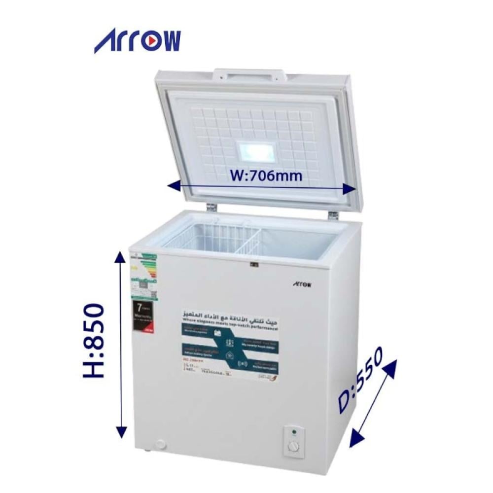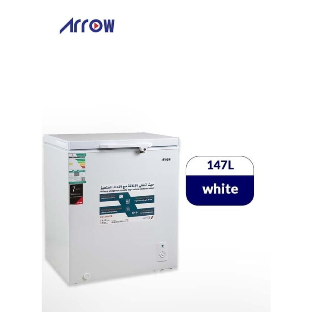 يوفر لك فريزر ارو الأفقي بسعة 147 ليتر وحجم 5.2 قدم مكعب أداء تجميد موثوقًا مع قدرة تجميد تصل إلى ‎≤ –18°C وتحكم ميكانيكي سهل، إلى جانب تصميم أبيض عملي يناسب الاستخدام المنزلي والتجاري الصغير.