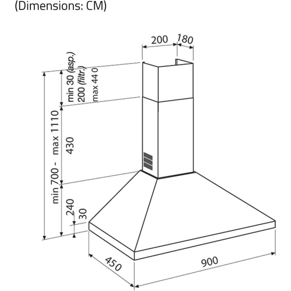النوع: شفاط هرمي بلت إن، بعرض 90 سم يناسب مختلف أحجام المطابخ.