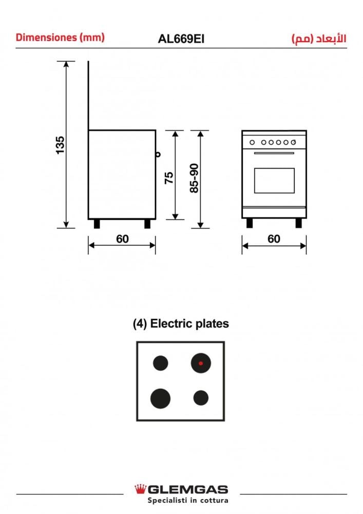مواصفات فرن جليم غاز 60*60 ( كهرباء ) 4 عيون استيل AL669EI: