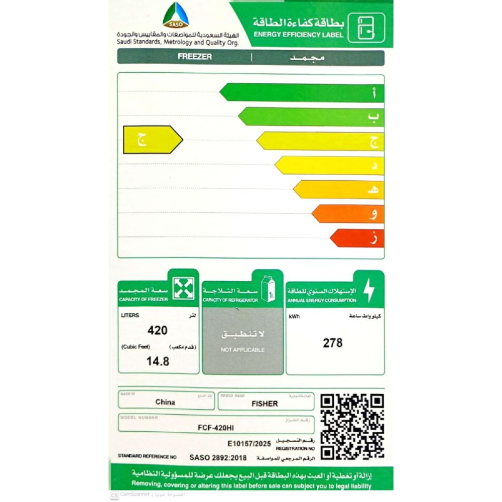 مواصفات فريزر افقي فيشر 419 ليتر انفرتر – أبيض: