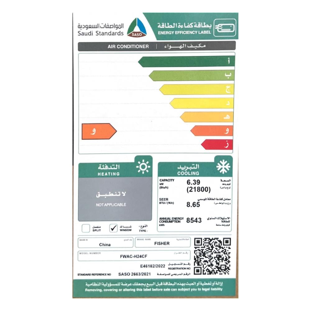 مواصفات مكيف شباك فيشر 24 ألف وحدة بارد: