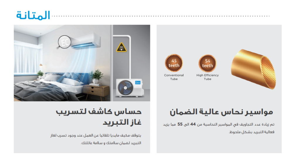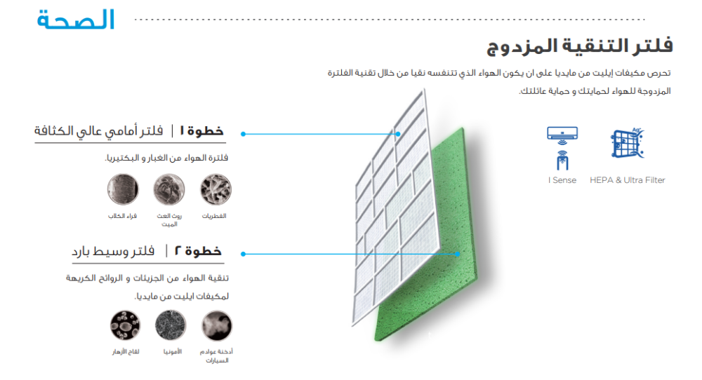 - فلتر مزدوج لتنقية الهواء: تحافظ مكيفات ميديا ايليت على نقاء الهواء وجودته.